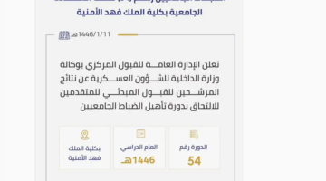 “رسميًا” طرح نتائج القبول في كلية الملك فهد الأمنية 1446 للدورة 54
